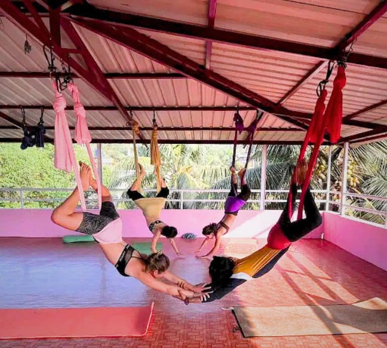 We offer drop-in classes in Pranayama & Meditation, Ashtanga Primary Series, Vinyasa Flow Yoga, Hatha Yoga, Aerial Yoga, and Acro Yoga. We offer daily drop-in Yoga classes and guided meditations throughout the season, suitable for those who cannot engage in Yoga all day – open to all our Yoga holiday guests and also to ‘drop-in’ guests who stay outside of Raj Yoga School. Our Yoga classes are convenient for all levels.
